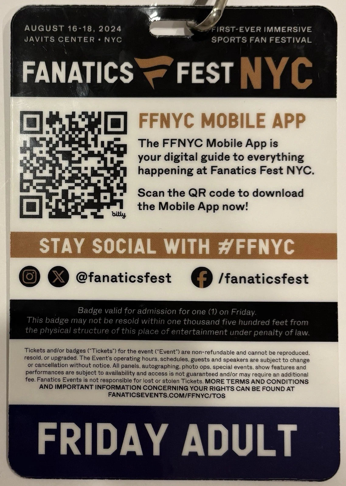 Fanatics Fest Inaugural 2024 Day 1 Friday Adult 8/16/24 Pass with Lanyard! (Unsigned)