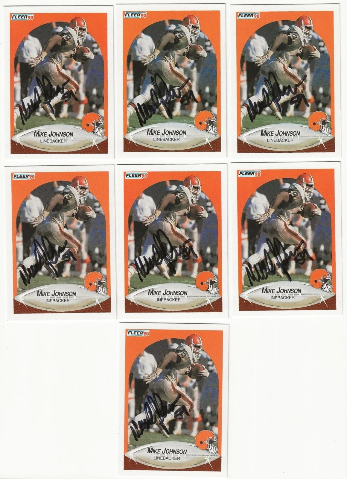 LOT Of 7 Mike Johnson Autographed/Signed 1990 Fleer NFL Cards Cleveland Browns!