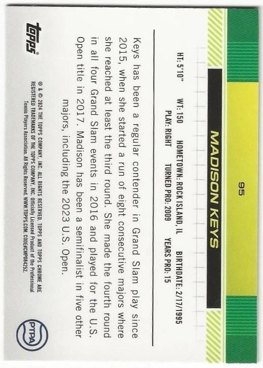 Madison Keys Autographed/Signed 2024 Topps Chrome Sapphire Card Exact Proof!