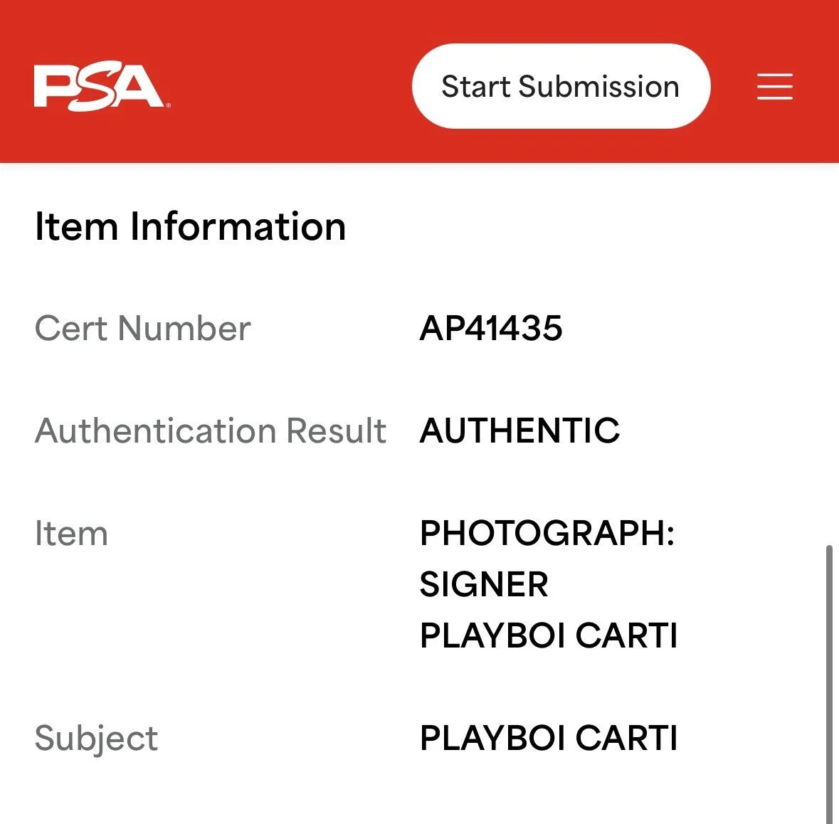 Playboi Carti Autographed/Signed 11x14 Photo PSA Custom Mat 16x20 Framed!