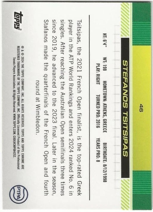 Stefanos Tsitsipas Autographed/Signed 2024 Topps Chrome Prism Refractor 1st Card Exact Proof!