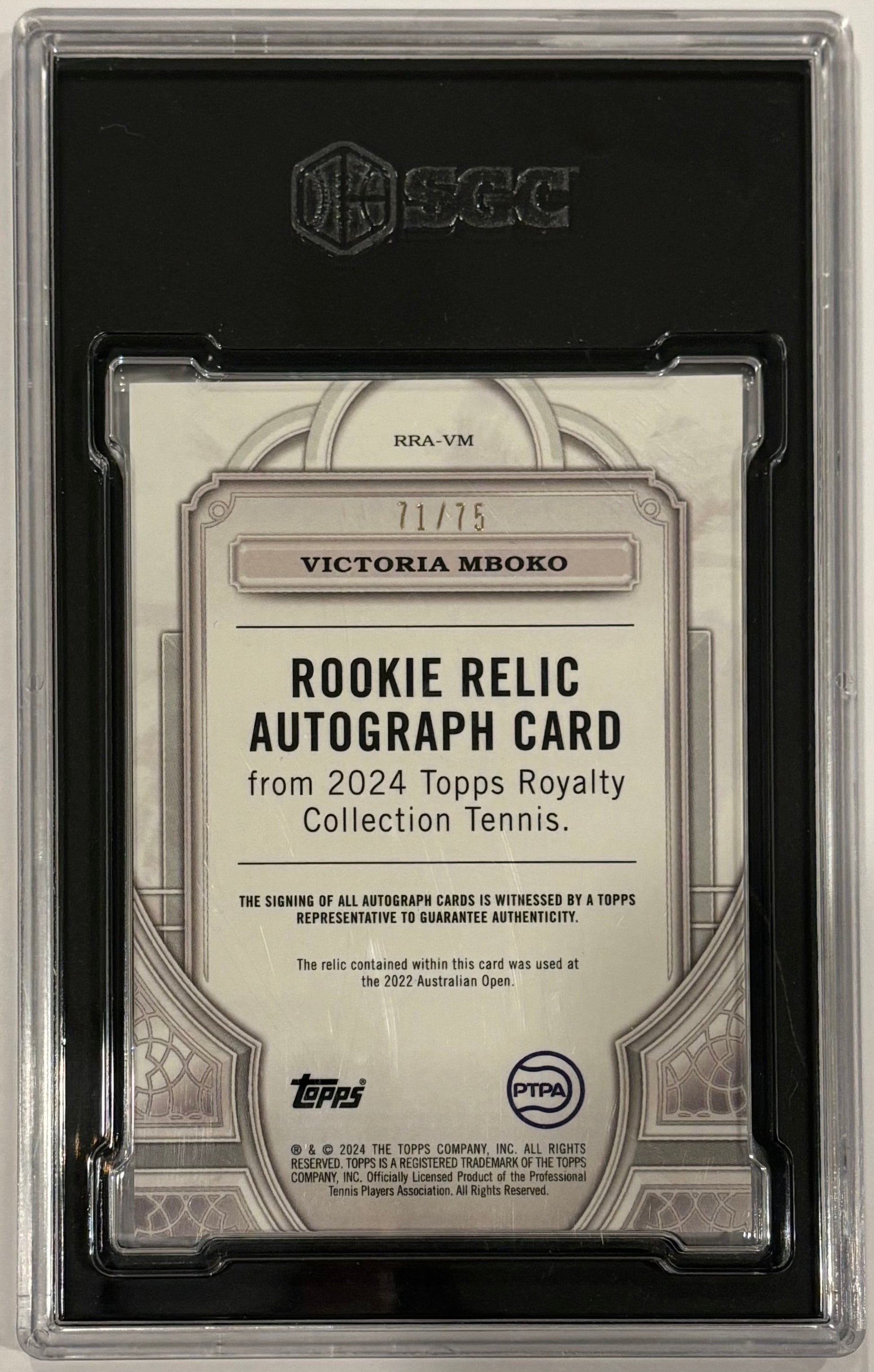Victoria Mboko 2024 Topps Royalty Rookie Relic RPA /75 SGC Card 9 Auto 10!